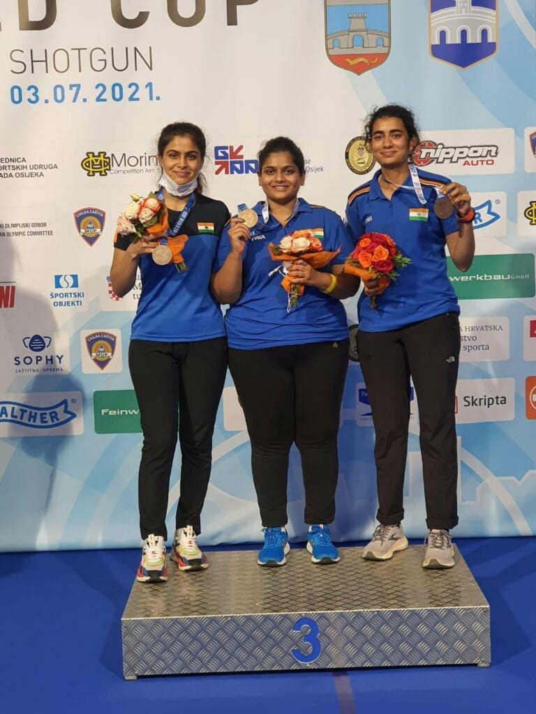 Indian Team Deswal Yashaswini Singh, Bhaker Manu and Sarnobat Rahi Won Bronze Medal In 10m Air Pistol Team Women At ISSF World Cup Rifle/Pistol/Shotgun In Osijek, Croatia.