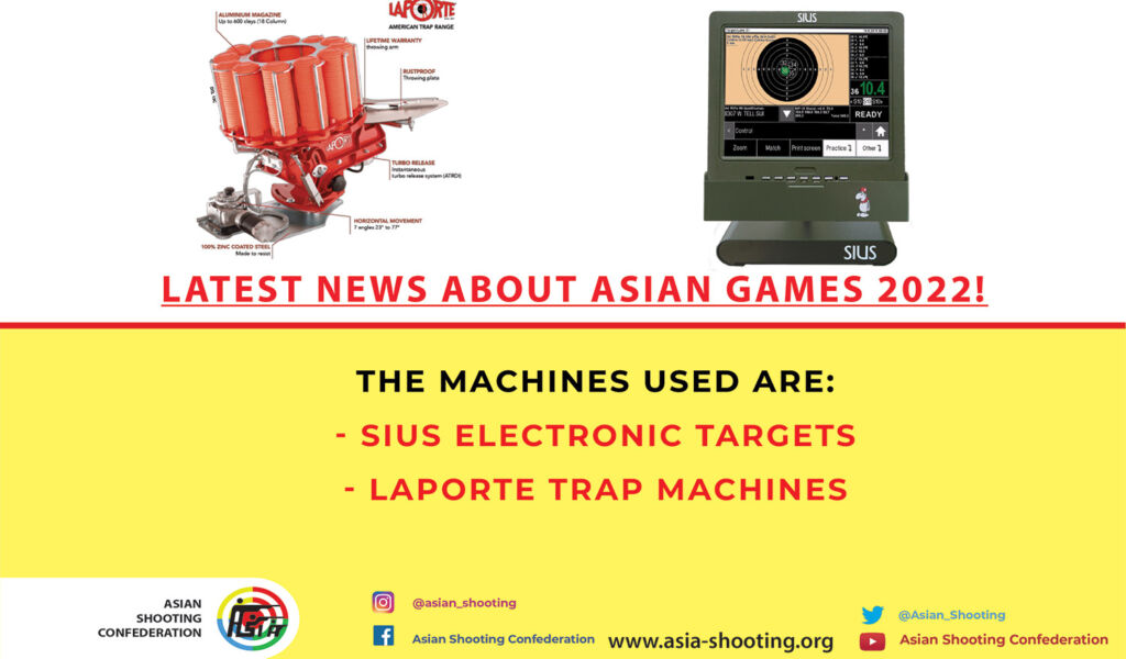 The ASC have been informed by its technical delegates about the shooting machines that will be used in Asian Games 2022. The AG2022 organizing committee is keen to use the latest international shooting machines so that all shooters are on the same standard. The Trap and Skeet machines are Laporte Trap and Rifle / Pistol are SIUS Electronic Targets.