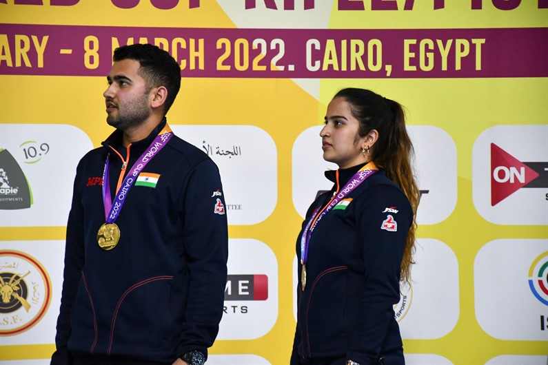 Athletes from India Rhythm SANGWAN and Anish ANISH won Gold in the 25m Rapid Fire Pistol Mixed Team. Second place went to Chawisa PADUKA and Ram KHAMHAENG from Thailand, and third place went to Shun Xie TEO and Swee Hon LIM from Singapore.
