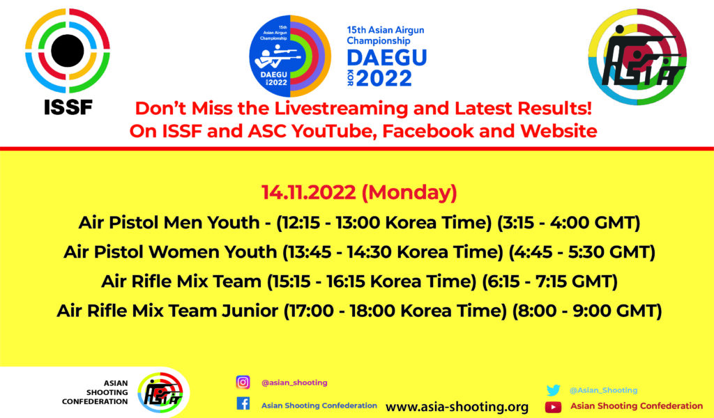 15th Asian Airgun Championship - 14 November 2022 (Monday) Livestreams