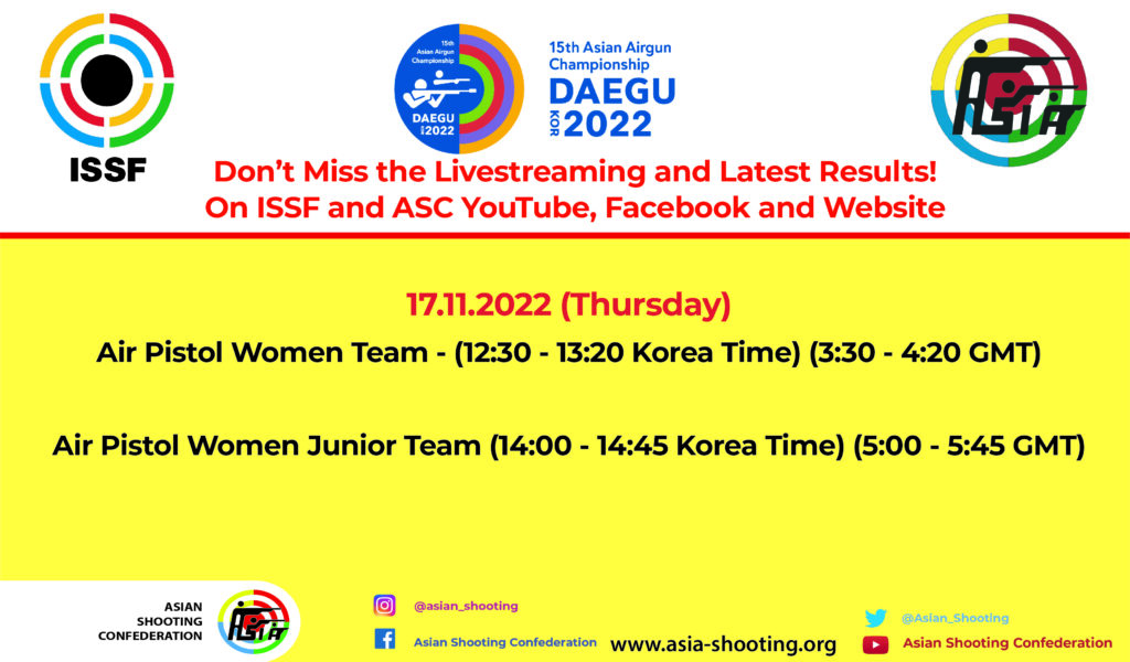 15th Asian Airgun Championship - 17 November 2022 (Thursday) Livestreams