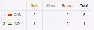 In the first final, the Republic of China's HUANG Yuting and SHENG Lihao won the gold medal in the 10m air rifle mixed team, while India's RAJU Narmada Nithin and PATIL Rudrankksh Balasaheb won the bronze medal in the same discipline.