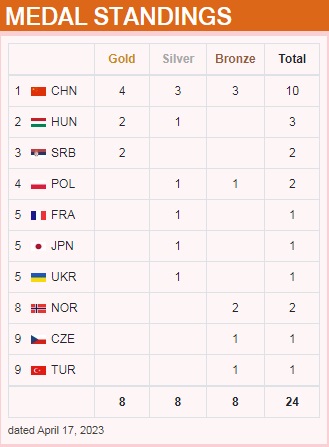 On the fourth day of the finals at the ISSF World Cup, China secured remarkable victories, winning two gold medals, one silver medal, and one bronze medal in two different events.
