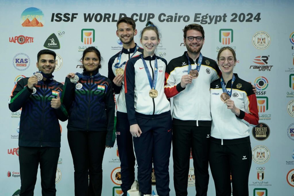 In a spectacular display of skill and determination, athletes from Kazakhstan and India showcased their prowess in the ISSF World Cup 2024 held in Cairo, Egypt. The 2nd day of the finals witnessed outstanding performances in the 10m Air Rifle Mixed Team, 10m Air Pistol Mixed Team, Trap Women, and Trap Men events,producing outstanding results.