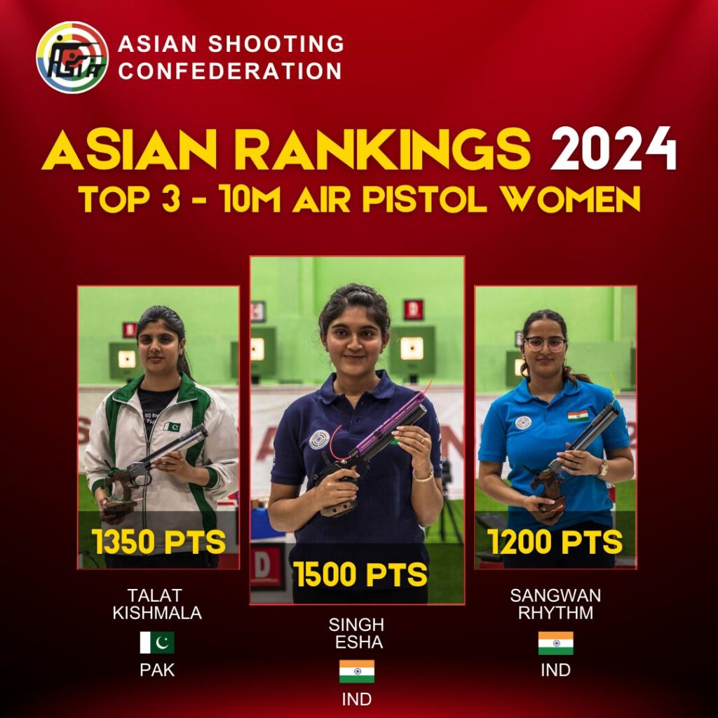 Asian Rankings 2024 Top 3 in 10m Air Pistol Women