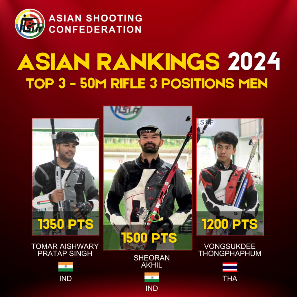 Asian Rankings 2024 Top 3 in 50m Rifle 3 Positions Men