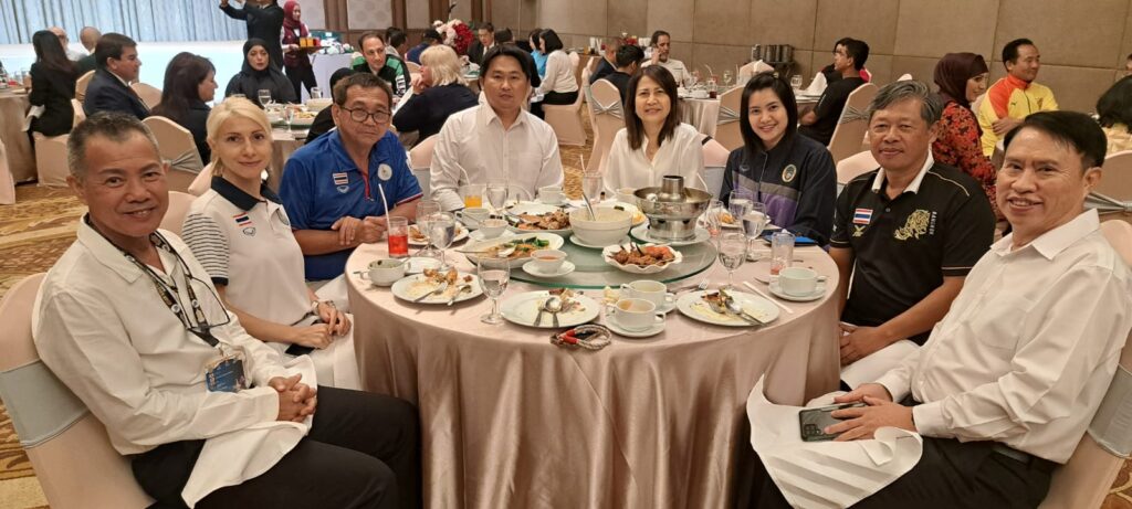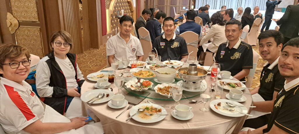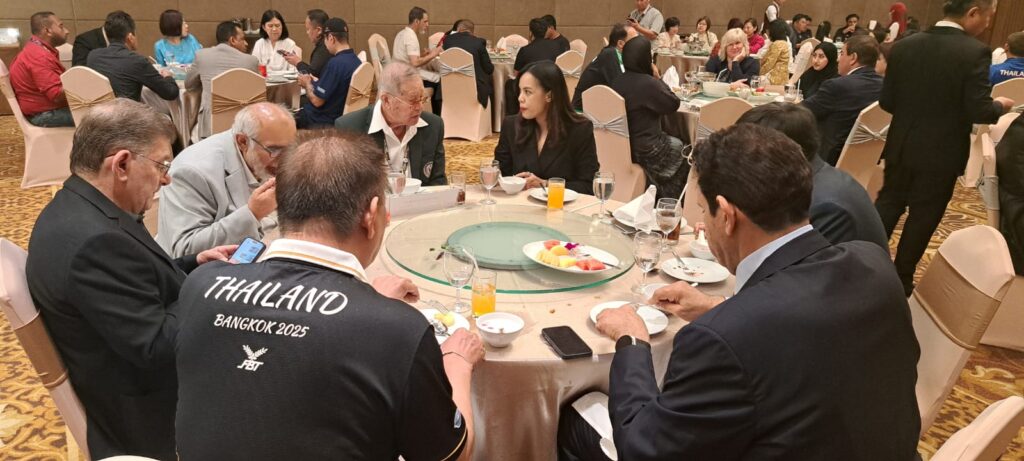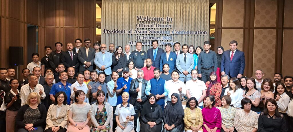 On the sidelines of the Asian Rifle/Pistol Cup 2025, H.E. Sheikh Salman AlSabah, President of the ASC, hosted the Official ASC President’s Dinner at Almeroz Hotel. The event brought together key figures in the shooting sport community, including the President and Secretary General of the National Shooting Sport Association of Thailand (NSSAT), Mrs. Sopittsara Tippayamonton, Secretary General of NSSAT, as well as the President and Secretary General of the Skeet and Trap Shooting Association of Thailand.
