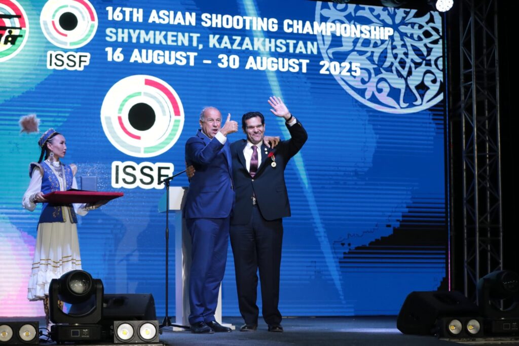 At the grand opening of the 16th Asian Shooting Championship in Shymkent, a historic gesture of unity and recognition took place as the Presidents of ASC and ISSF exchanged honors.
