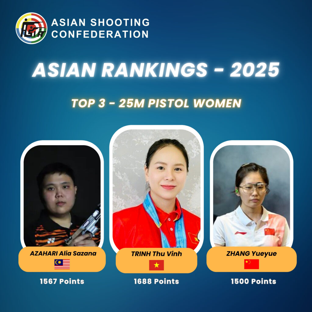 Asian Rankings 2025 Top 3 in 25m Pistol Women