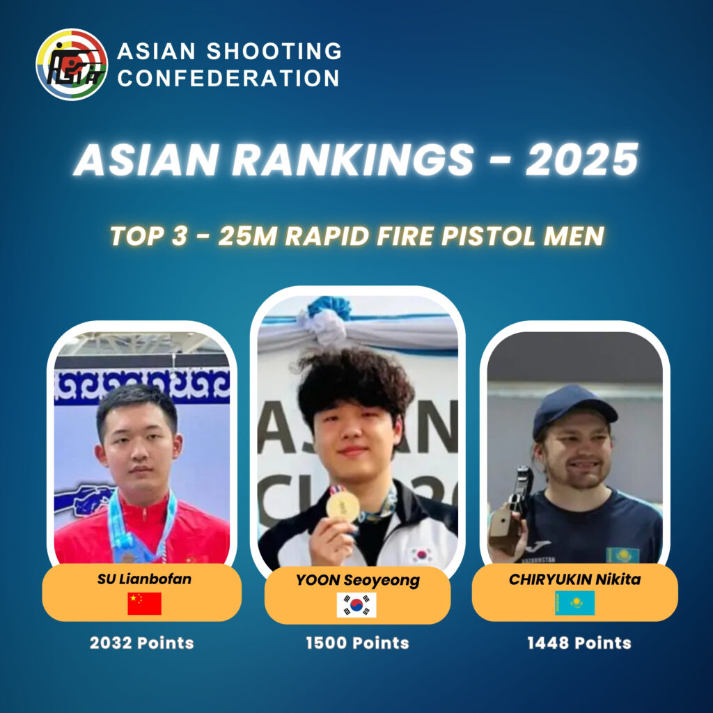 Asian Rankings 2025 Top 3 in 25m Rapid Fire Pistol Men