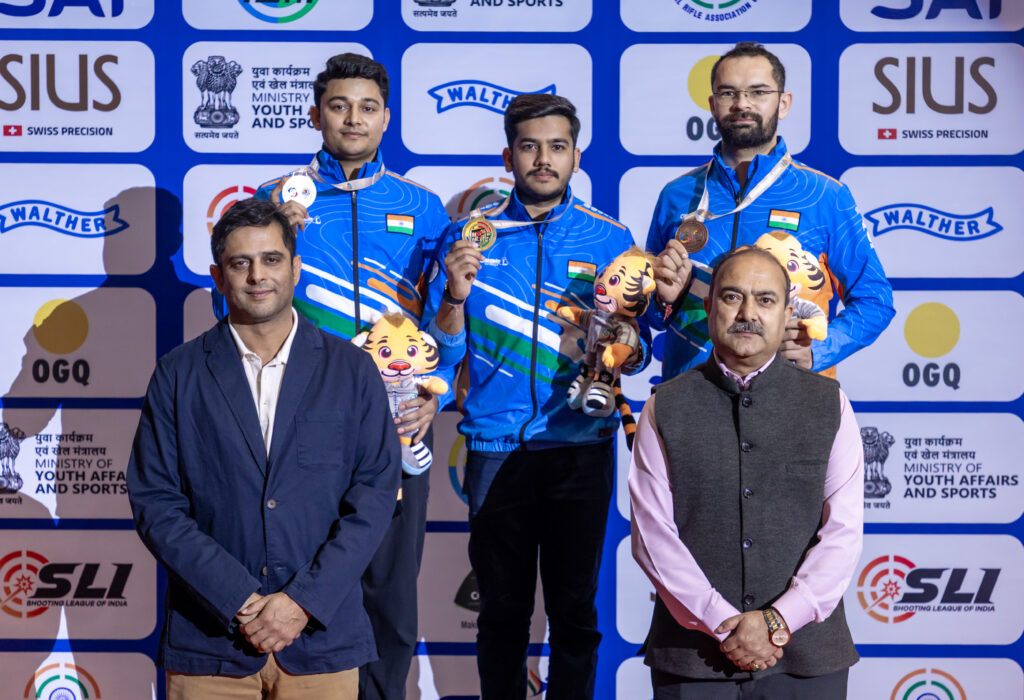 The 50m Rifle 3 Positions Men final on Day 9 of the Asian Rifle/Pistol Championship 2026 concluded with a clean sweep for India, as Indian shooters secured all three podium positions.