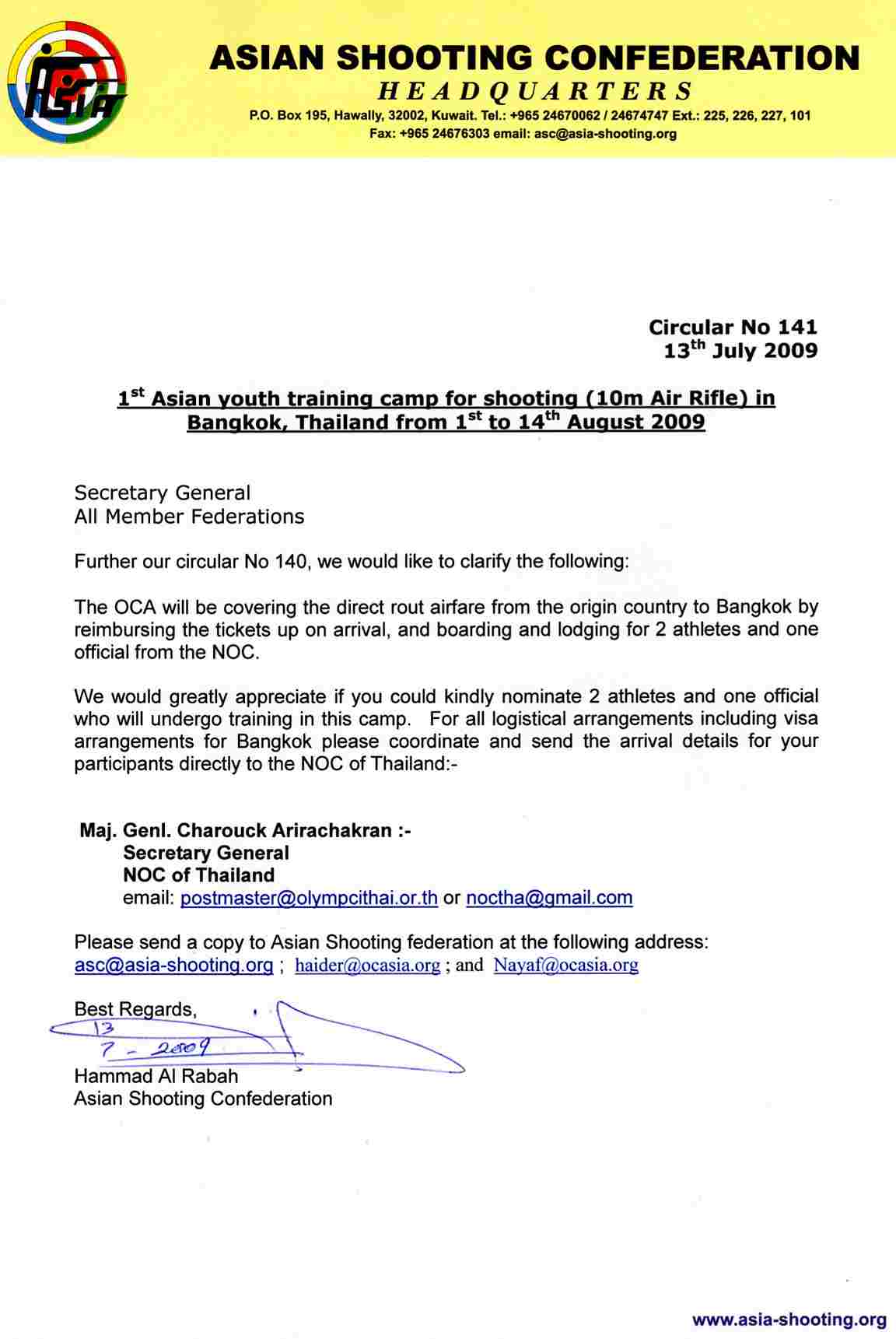 1st Asian Youth Training Camp - Clarification # 141