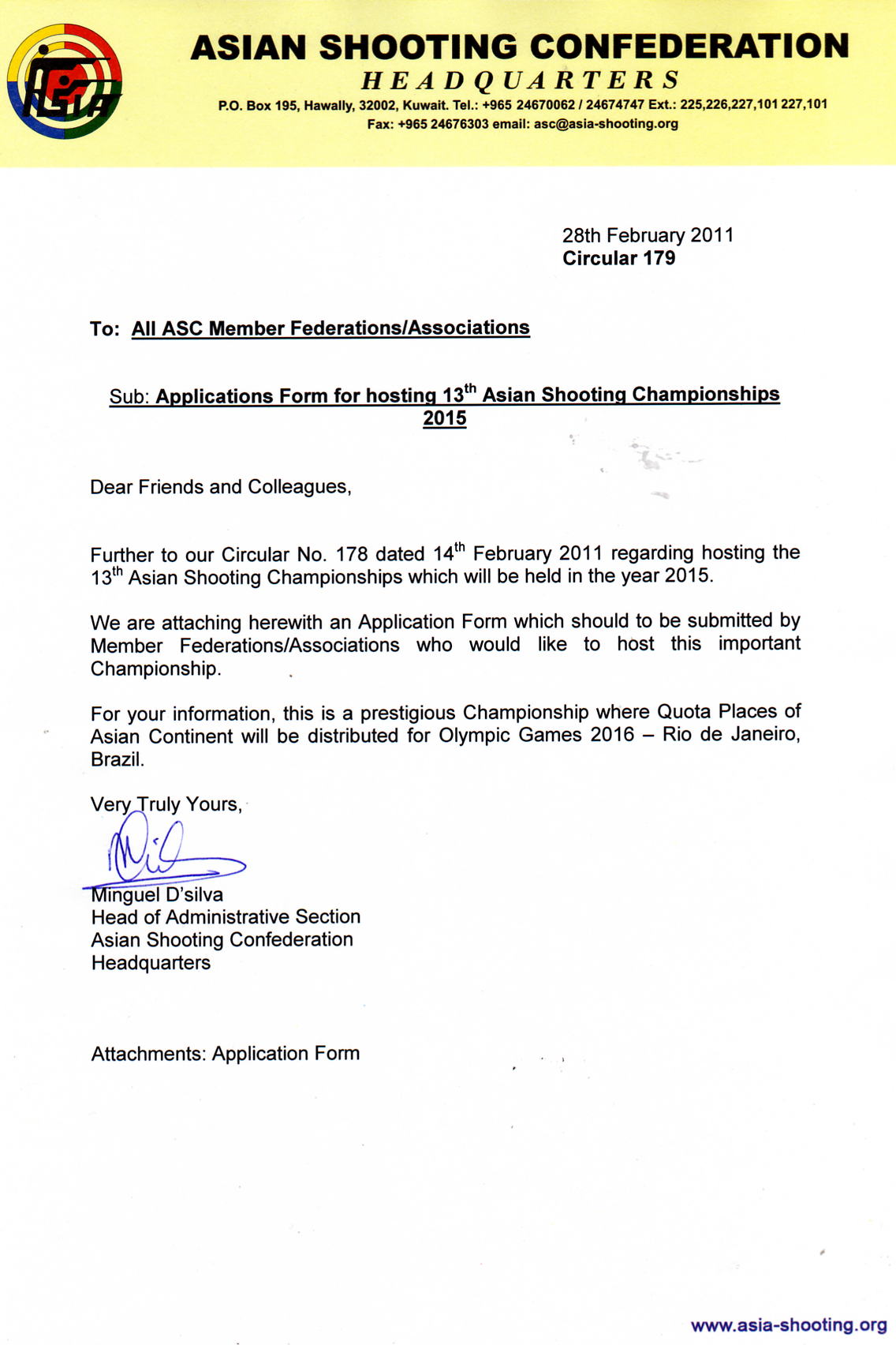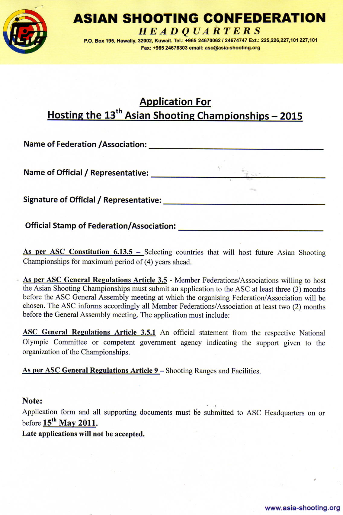 Application form for Hosting the 13th Asian Shooting Championships # 179